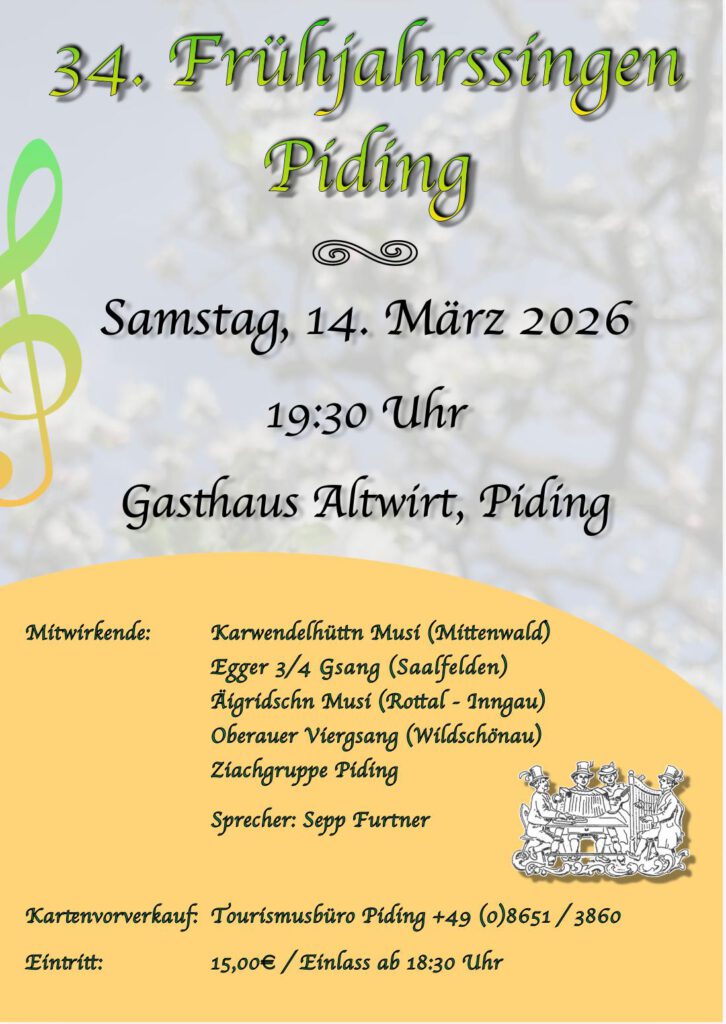 Traditionelles Frühjahrssingen: Das alljährliche Sänger- und Musikantentreffen beim Altwirt findet am 14. März 2024 um 19:30 Uhr statt.